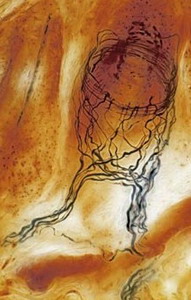 這張顯微圖像顯示的是毛囊的感覺神經(jīng)末梢。感覺神經(jīng)末梢(sensory nerve ending)是感覺神經(jīng)元周圍突的終末部分,該終末與其他結(jié)構(gòu)共同組成感受器。感受器能接受內(nèi)、外環(huán)境的各種刺激,并將刺激轉(zhuǎn)化為神經(jīng)沖動,傳向中樞,產(chǎn)生感覺。圖中的色彩是將該組織用硝酸銀處理后呈現(xiàn)的,如同處理膠片一般。神經(jīng)軸突是正在消褪的黑色部分。照片是由斯匹克-沃克爾(Spike Walker)提供的。