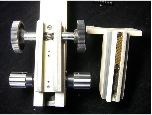 本來(lái)這種顯微鏡齒輪會(huì)剛好卡住,不過(guò)有時(shí)候轉(zhuǎn)到較高或較低的時(shí)候,會(huì)鬆卡,這時(shí)候如果硬轉(zhuǎn),右邊那個(gè)齒板的齒就會(huì)被齒輪磨平。較后的結(jié)果就是粗調(diào)節(jié)輪會(huì)鬆,載物臺(tái)就會(huì)掉下來(lái),這種情況只有換齒板才能解決。
