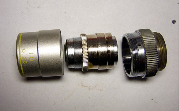 物鏡的部份,倍率越高物鏡就越長(zhǎng),當(dāng)然結(jié)構(gòu)也相對(duì)復(fù)雜。還好物鏡的螺紋有標(biāo)準(zhǔn)規(guī)格,所以A家的物鏡和B家的物鏡其實(shí)可以互相替換。
